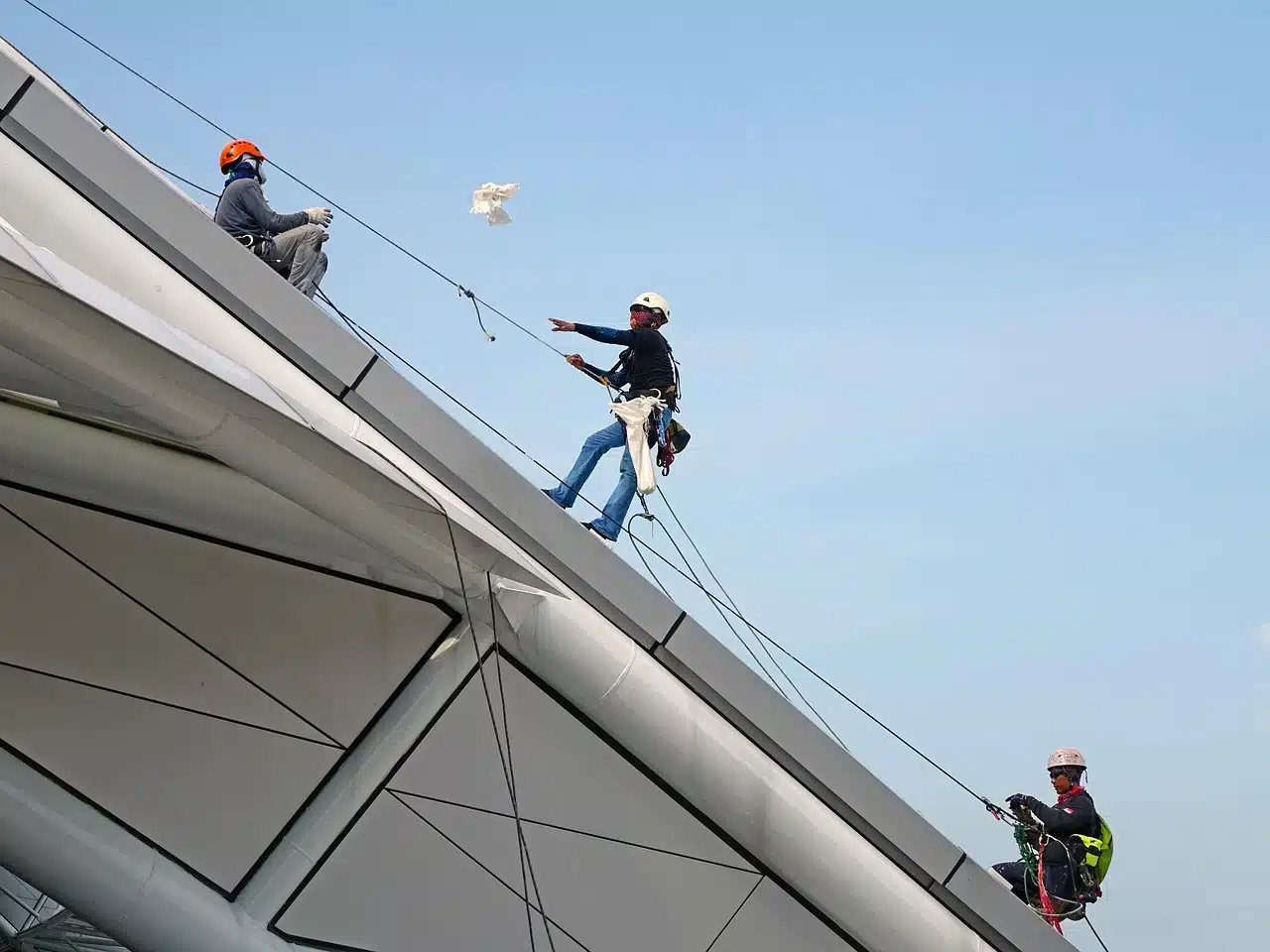 Vid takarbete är korrekt fallskydd en förutsättning för både säkerhet och produktivitet. Med rope access kan våra yrkesklättrare röra sig smidigt längs takytor och installationer utan behov av stora lyftanordningar eller ställningar.
