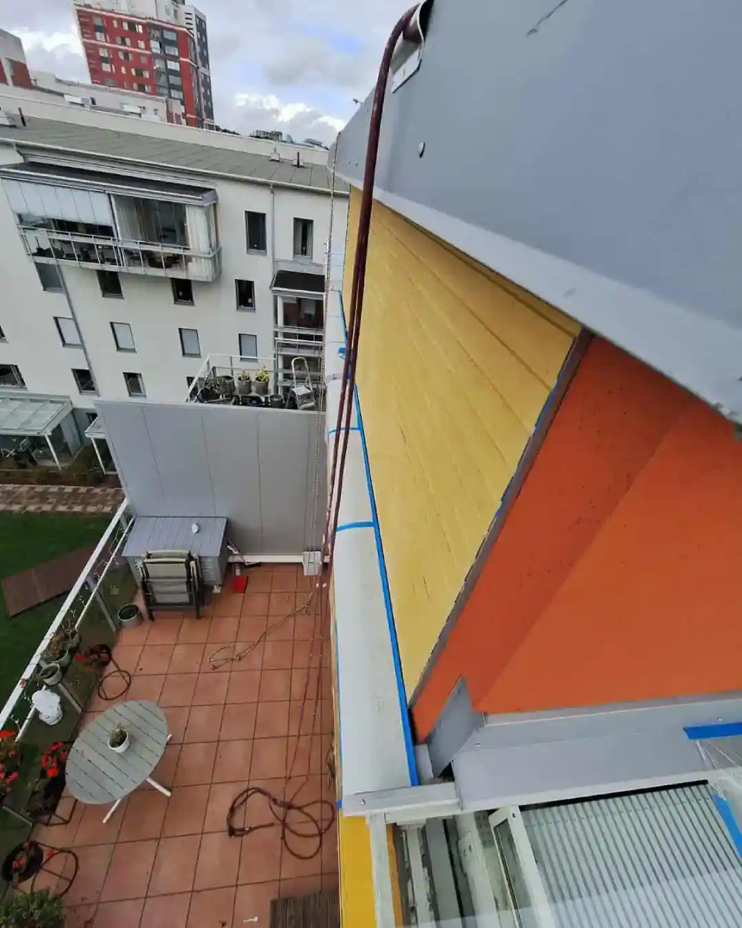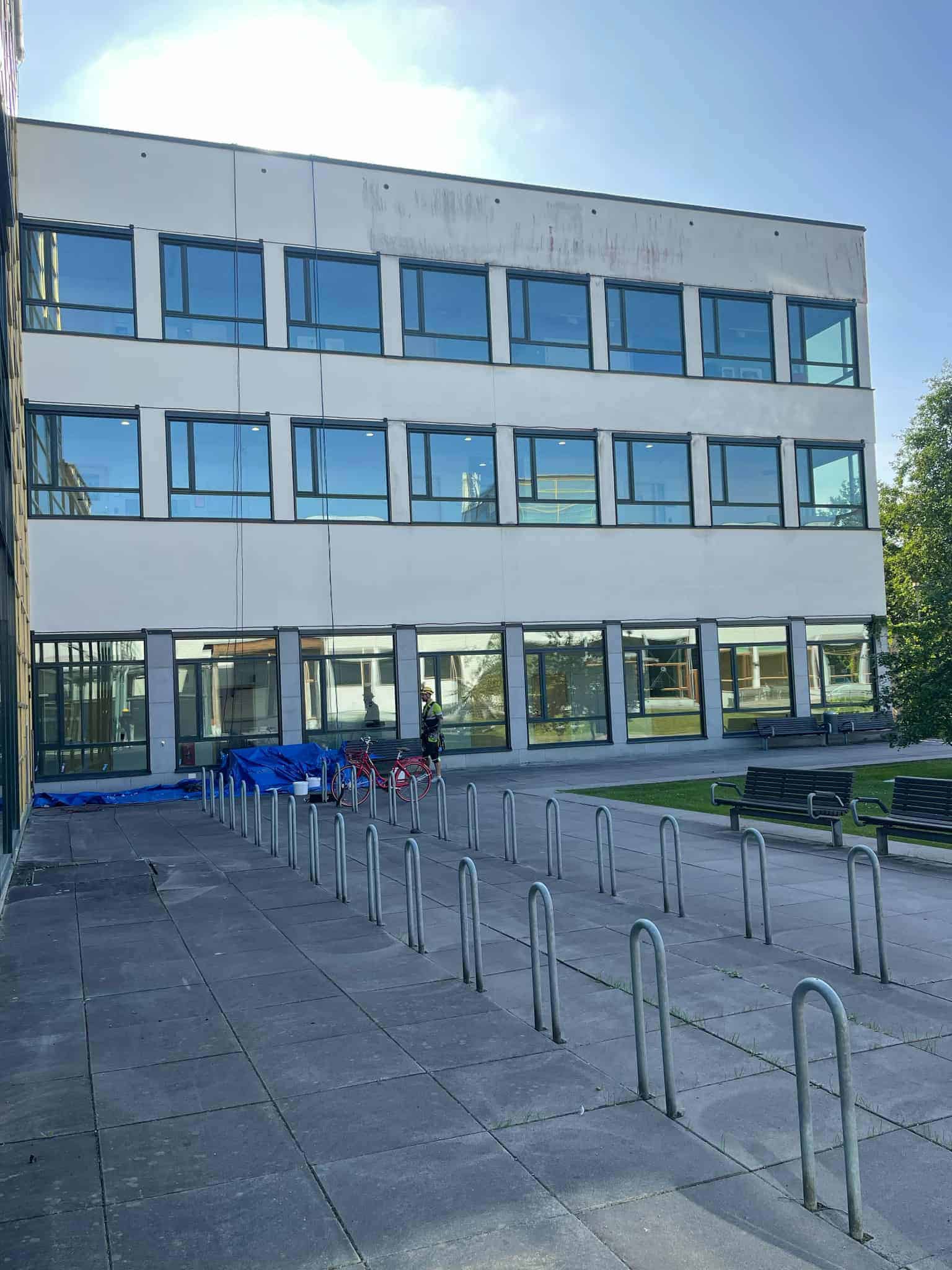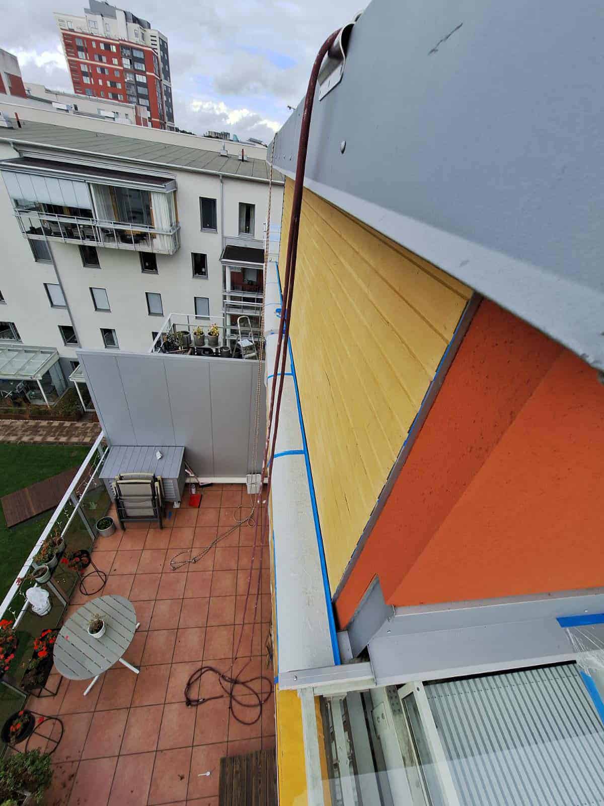 Vi anlitas ofta för fasadmålning på innergårdar hos bostadsrättsföreningar, skolor och andra fastigheter. Med rope access slipper man dyra mobilkranar, bomliftar som måste lyftas in och ut, eller omfattande ställningsbyggen som tar tid, medför risk för skador på byggnaden och kan påverka säkerheten genom öppna dörrar och passager. Att anlita klättrare gör istället att arbetet kan påbörjas snabbt, utföras smidigt och avslutas utan störningar för boende, elever eller verksamhet