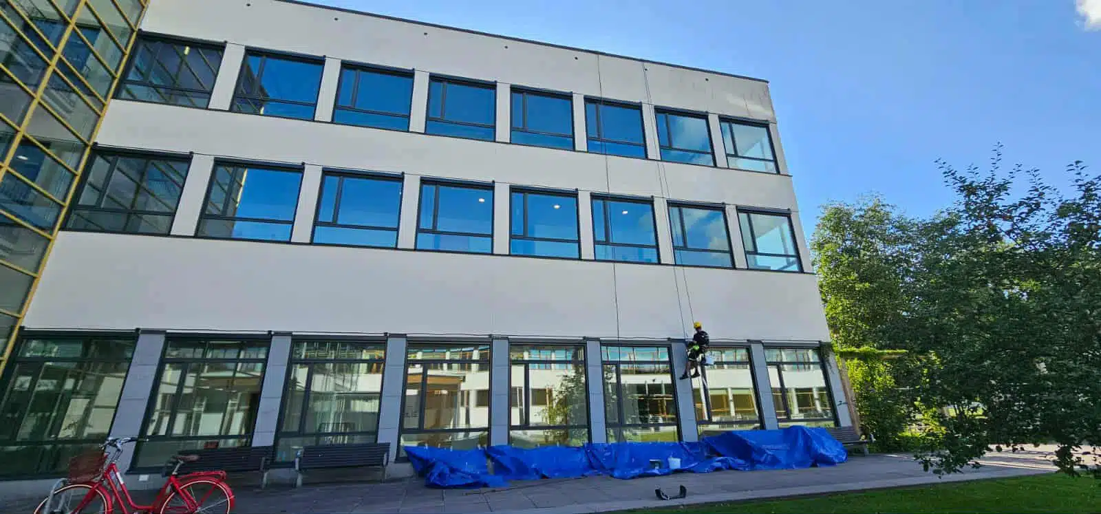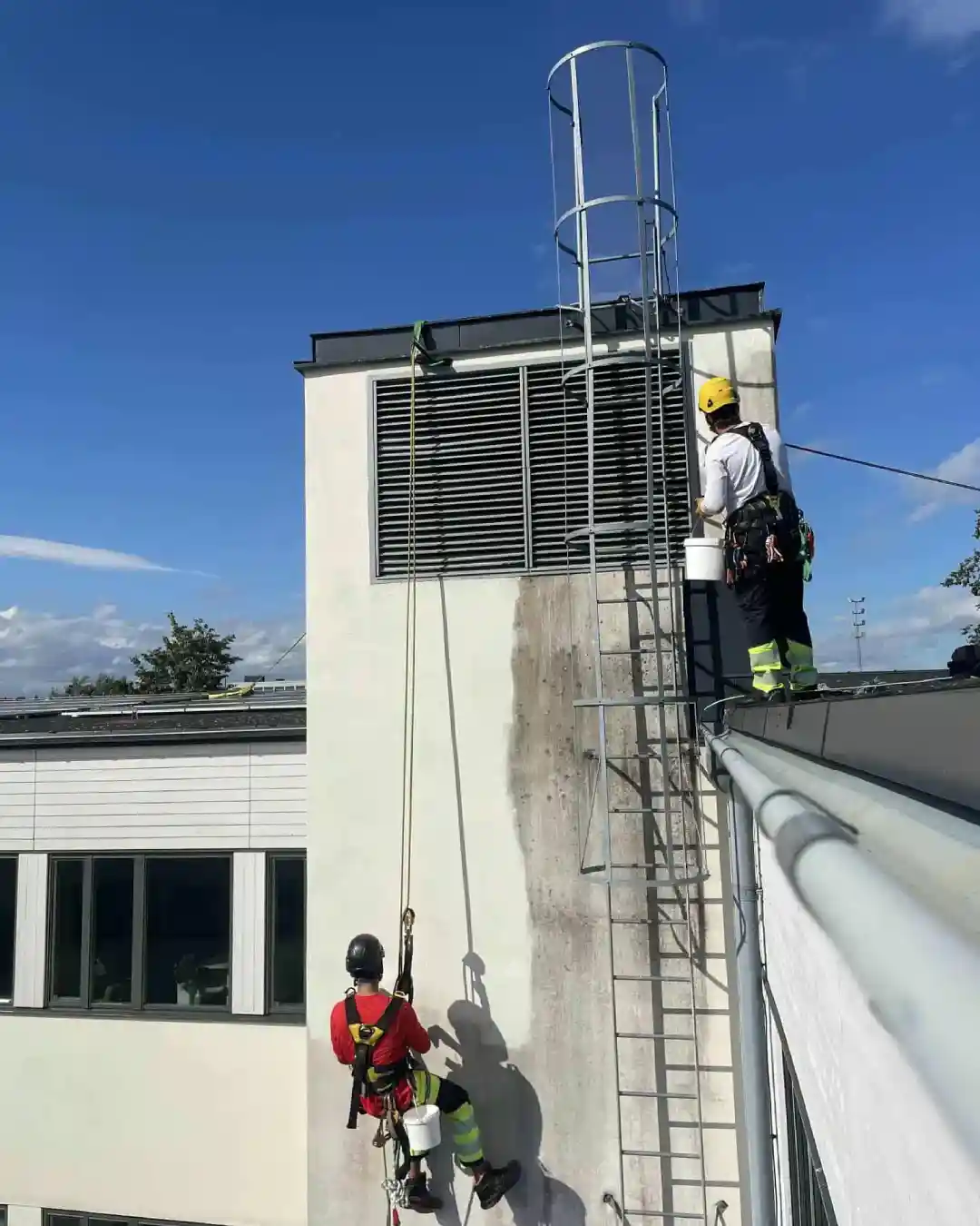 Metoden passar särskilt bra i stadsmiljöer, på innergårdar och vid byggnader där åtkomligheten är begränsad. Genom att arbeta direkt från rep kan vi nå hela fasaden på ett kontrollerat och effektivt sätt.