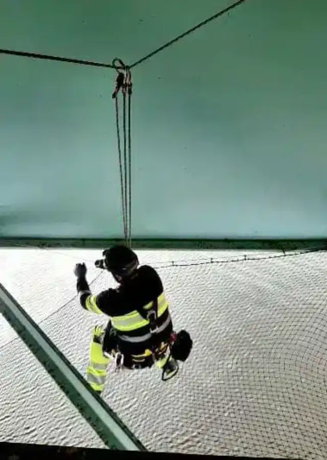 Montage av brandstegar och fasta säkerhetslösningar via rope access är en effektiv metod när åtkomsten är begränsad eller byggnaden är hög. Våra certifierade yrkesklättrare installerar systemen säkert och enligt gällande regler, helt utan ställningar. Det minskar både etableringstid och påverkan på fastigheten samtidigt som säkerheten säkerställs långsiktigt.
