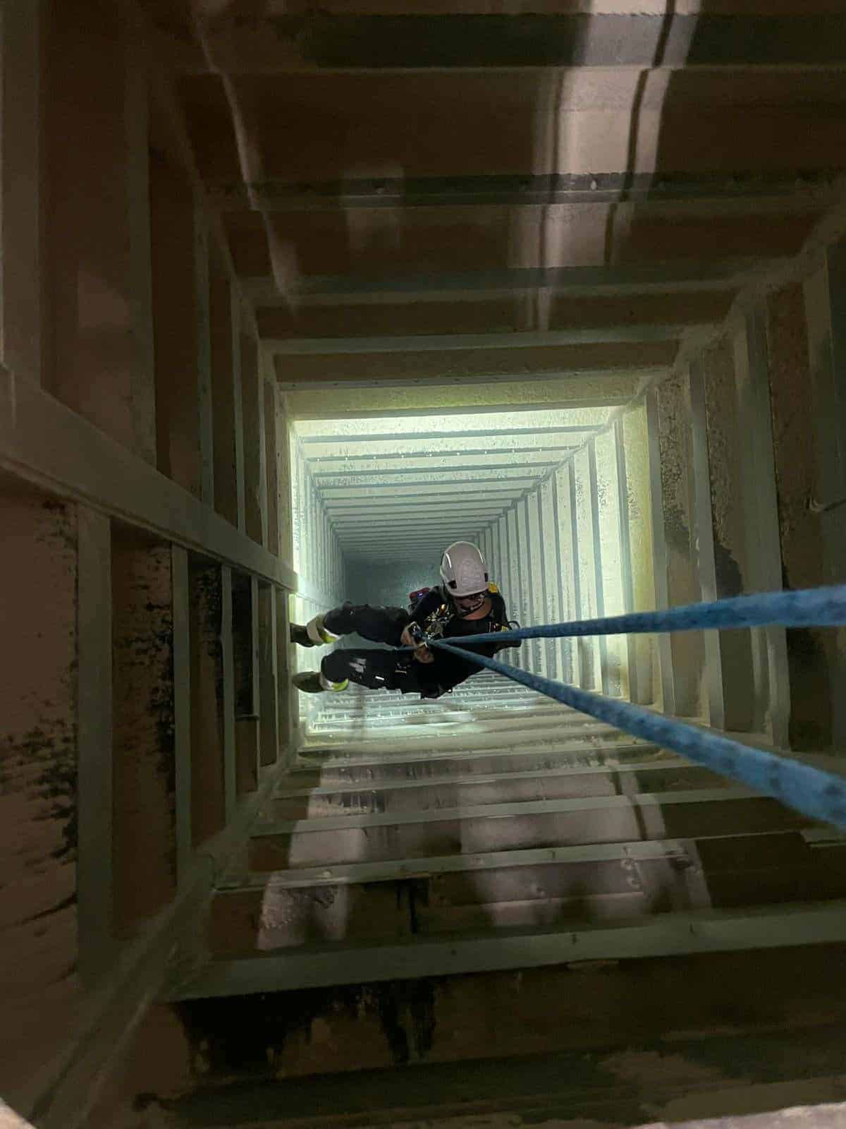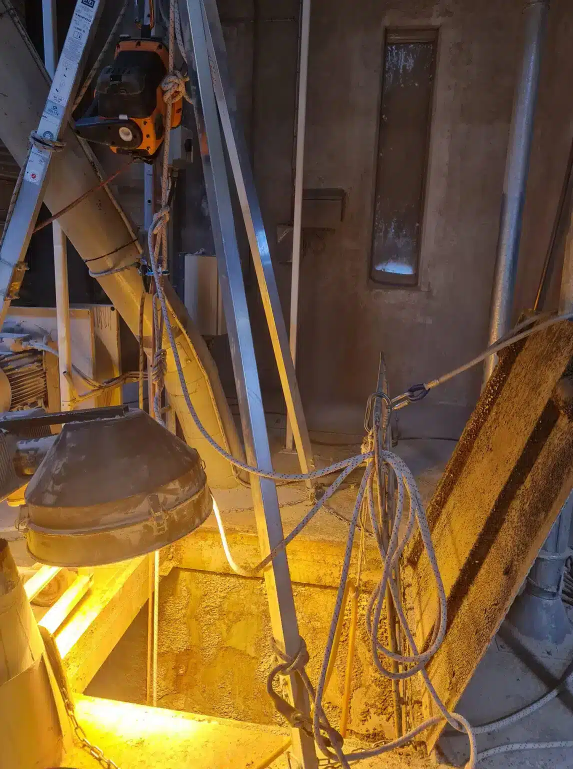 Arbete i slutna utrymmen ställer höga krav på både personal och utrustning. Därför använder vi alltid friskluftsmasker, gasmätare och specialanpassad fallskyddsutrustning för att minimera riskerna. Våra tekniker är certifierade inom rope access och har mångårig erfarenhet av arbete i silos och andra komplexa miljöer. För oss är säkerheten alltid högsta prioritet – både för våra medarbetare och för din anläggning.