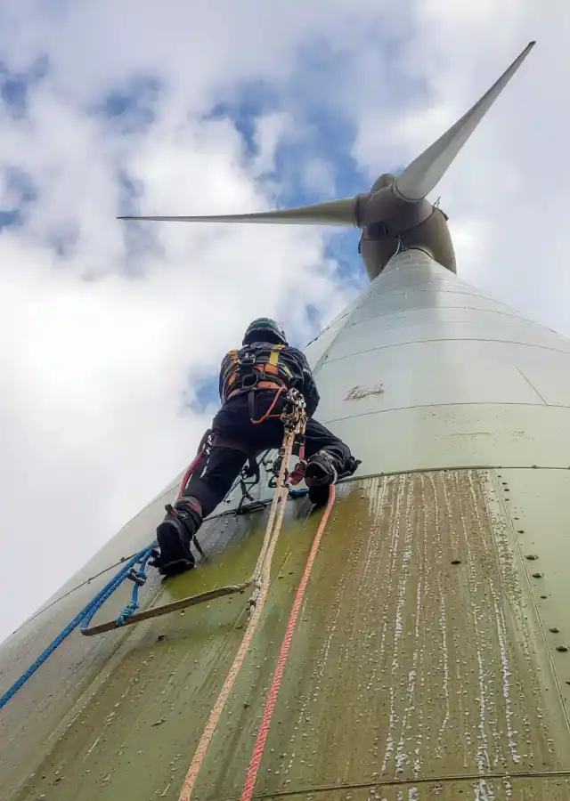 Våra tekniker har lång och gedigen erfarenhet av både inspektioner och reparationer på onshore och offshore vindkraftverk. Att arbeta på vindkraftverk ställer höga krav – det räcker inte att enbart vara rope access-certifierad. För att säkerställa säkerhet och kvalitet krävs dessutom en rad kompletterande utbildningar och certifikat, bland annat:
