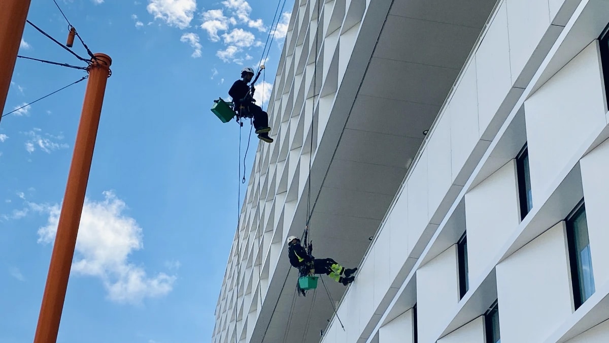 Säkerheten är en grundpelare i vår verksamhet. Våra yrkesklättrare följer strikt de rutiner och metoder som lärs ut inom IRATA- och SOFT-utbildningar. Vi inspireras även av den höga säkerhetskulturen inom den norska offshoresektorn. Samtidigt bygger vi vidare på dessa kunskaper i vår dagliga verksamhet för att ständigt höja standarden och minimera riskerna. För oss är det en självklarhet att personalens trygghet och välmående går först. En arbetsmiljö där våra medarbetare känner sig säkra och uppskattade skapar inte bara trivsel – det garanterar också ett professionellt och väl utfört arbete.